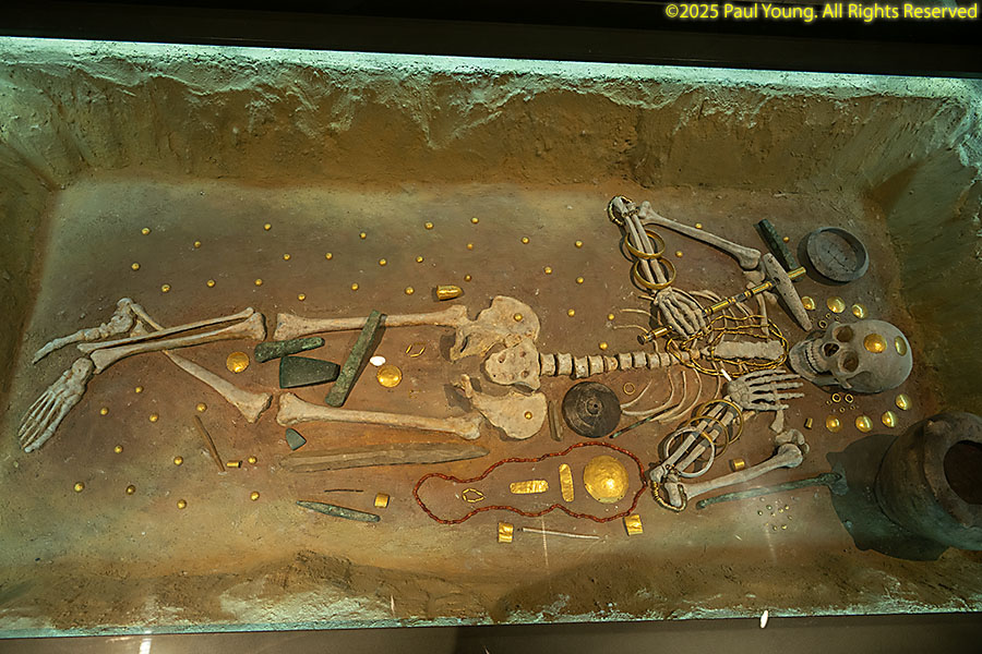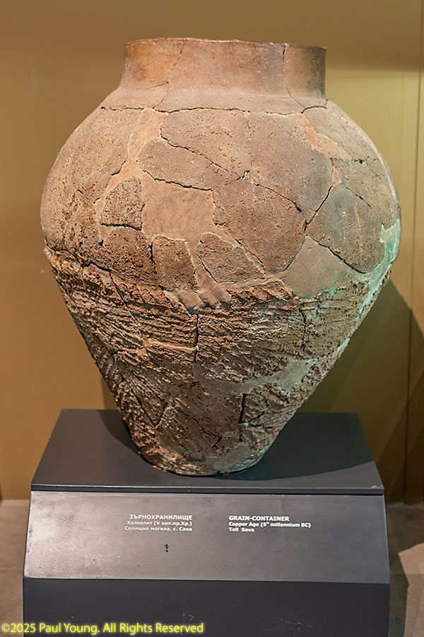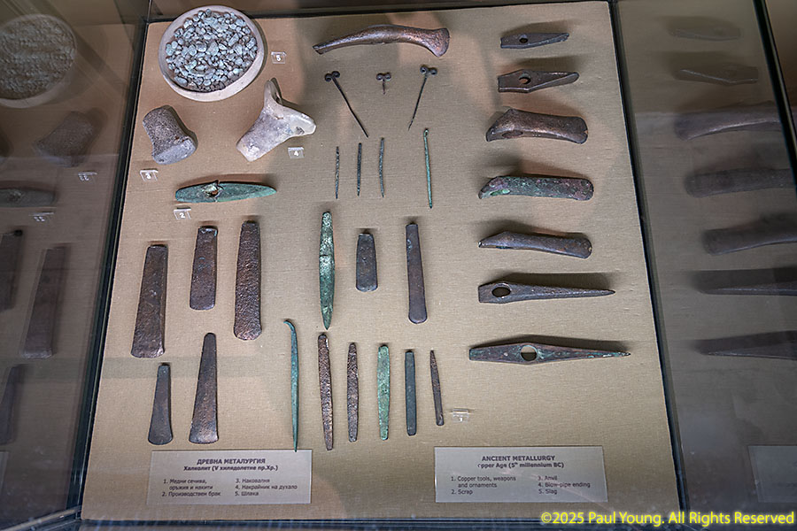 The Varna Archeological Museum is housed in the former girls' high school and has more than 100,000 objects on display. The earliest are from the Paleolithic, Mesolithic, and Neolithic settlements.The oldest worked gold treasure in the world was discovered in 1972 in the Second Varna Necropolis along with other Chalcolithic (Copper Age) objects and dated to 4600-4200 BCE. The collections has exhibits dating from the Early Stone Age to the Late Middle Ages.