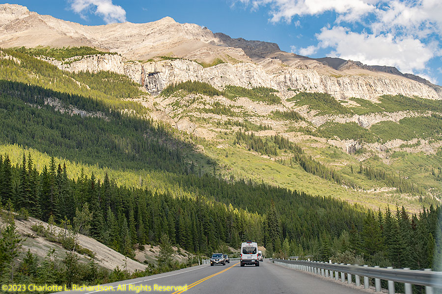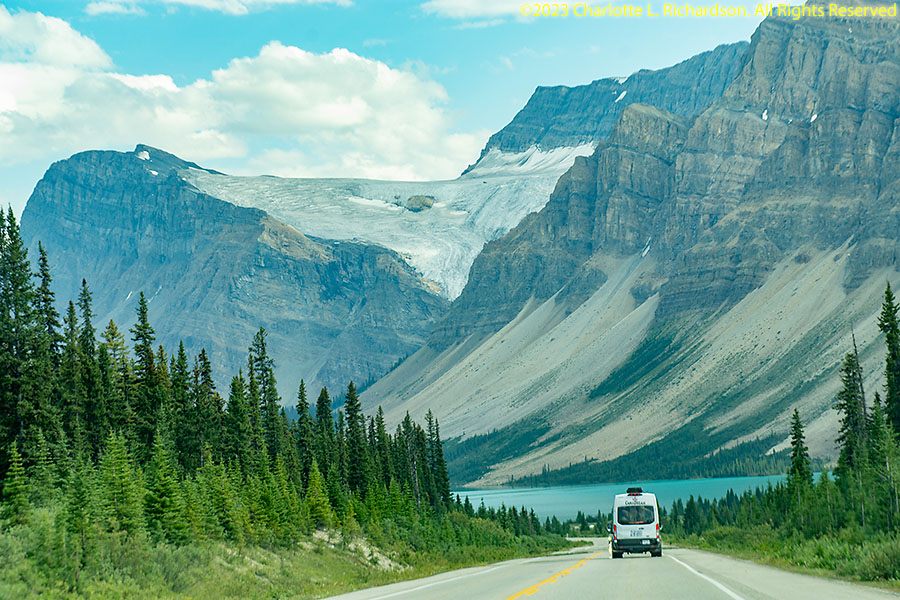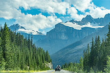 The beautiful 230 km (140 miles) Icefields Parkway (highway 93) links Jasper and Banff National Parks through spectacular mountain scenery, waterfalls, valleys, and glaciers. This is some of the most beautiful scenery in Banff. Sunwapta Pass, at 2034 meters (6675') the second-highest driveable pass in the national parks system, marks the boundary between Jasper and Banff parks. The southern part of the Icefields Parkway is very busy, especially with tour busses.