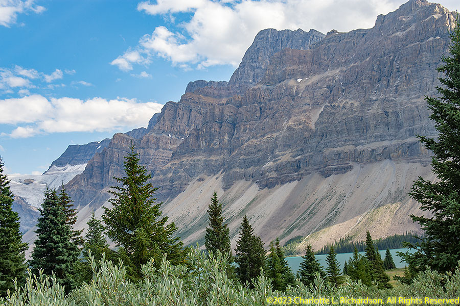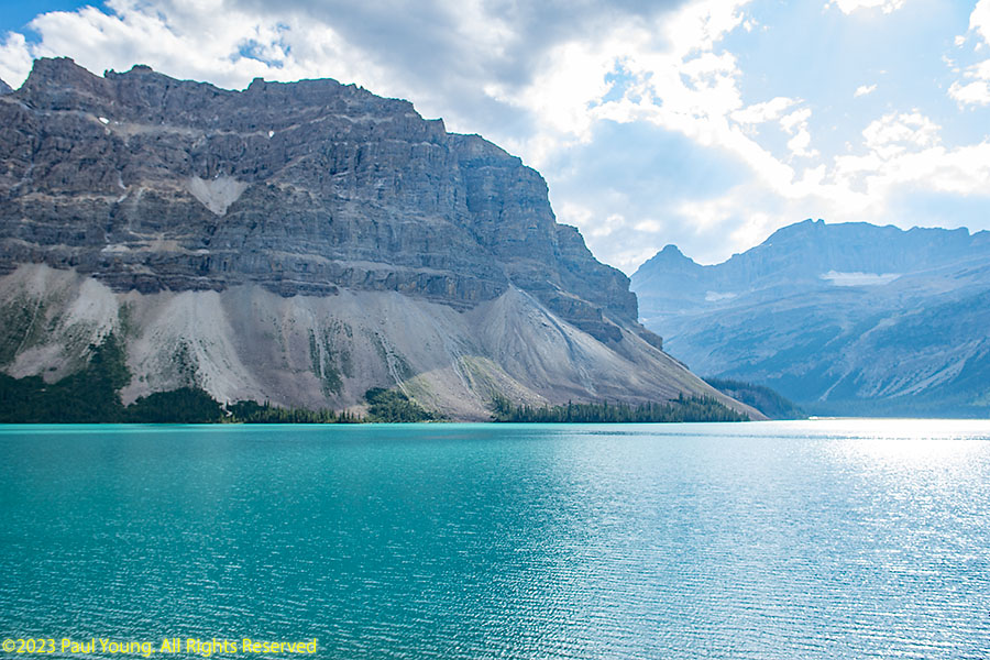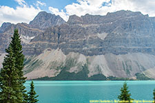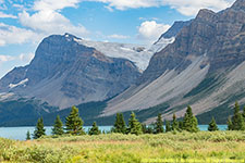 Bow Lake, at an elevation of 1920 m (6299') at the base of Bow Summit, is formed by runoff from the Bow Glacier in the Wapta Icefield. It is one of the largest lakes in Banff.