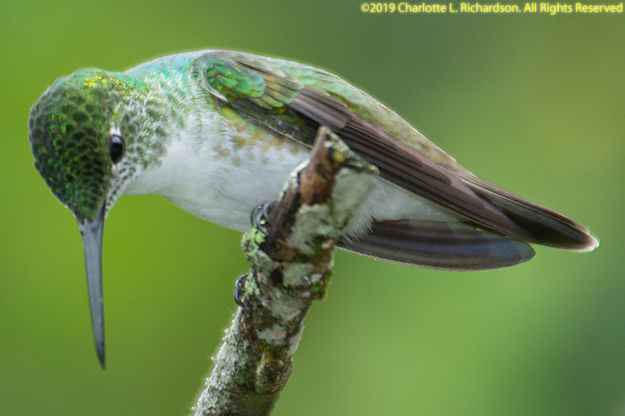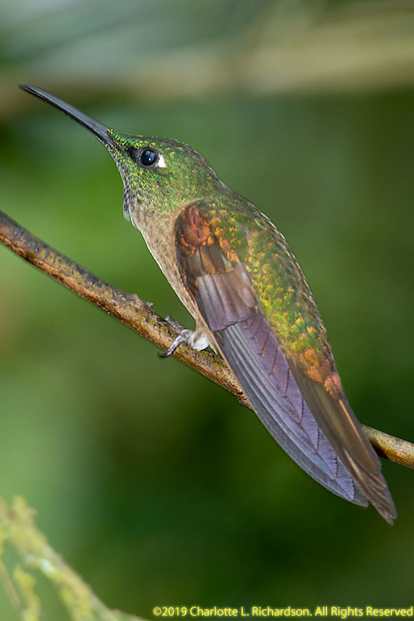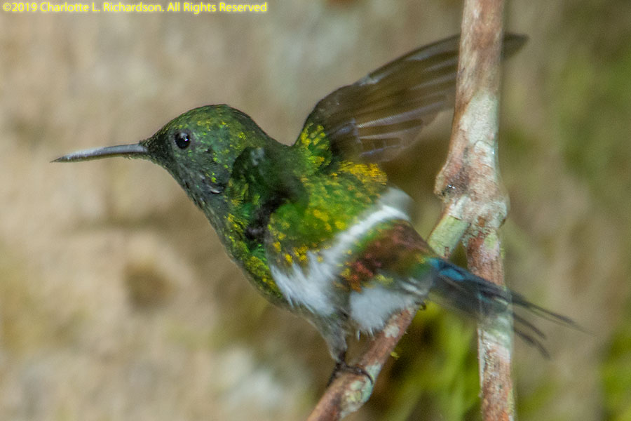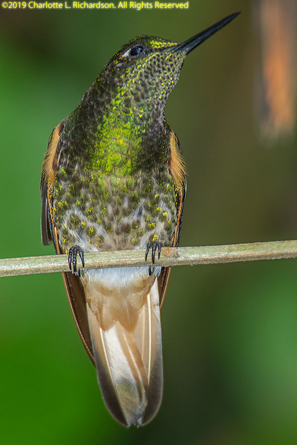 Rufous-vented whitetip (males left, females right), Urostrete ruficrissa