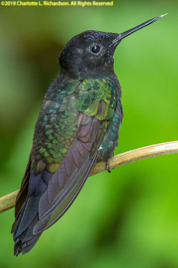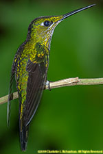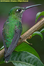 Green-crowned brilliant, Heirodoxa javula (male left, females right)
