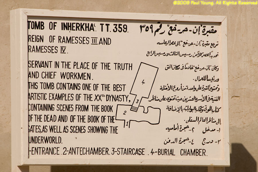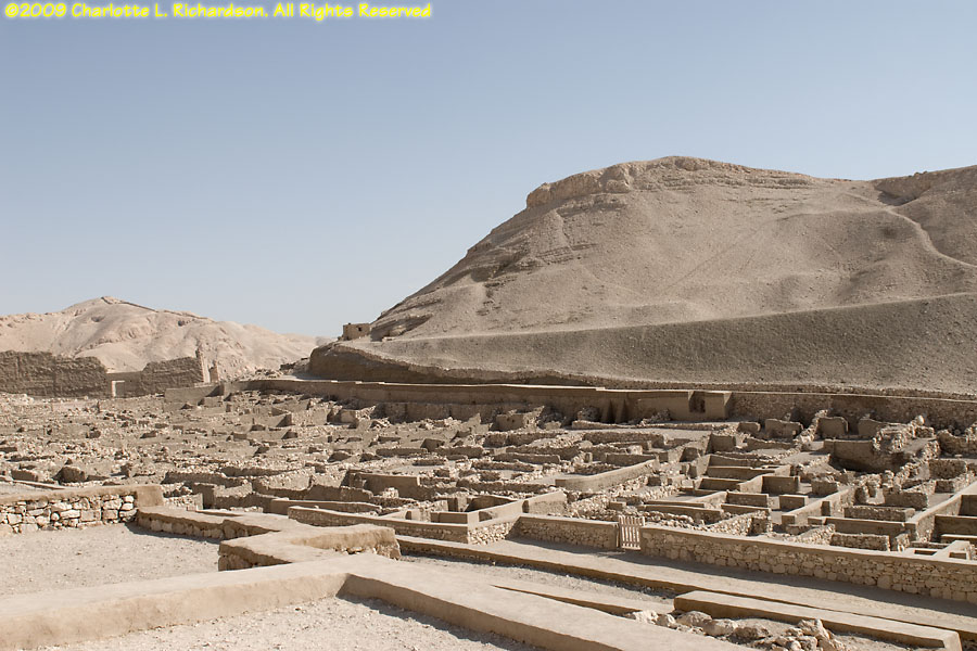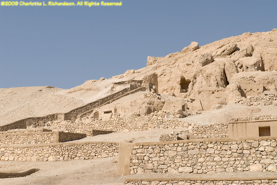 The necropolis at Deir al-Medina, near the Valley of the Queens in Thebes, is the burial place of the craftsmen, laborers, and servants who worked on the royal tombs. No photography is allowed inside the tombs.