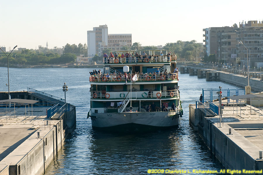Esna is the site of the Nile locks between Aswan and Luxor. The width of the locks governs how wide the Nile cruise boats can be.