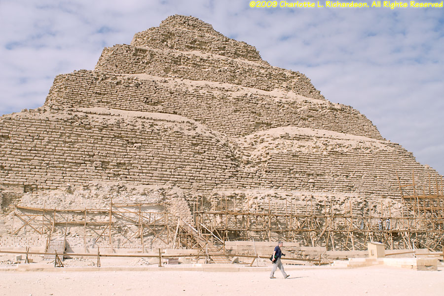 Saqqara (sometimes spelled Sakkara) is one of the richest archeological sites in Egypt. The step pyramid of Djoser is the earliest of Egypt's pyramids and the oldest existing stone structure in the world, dating back nearly 5000 years. It was built for 3rd-dynasty King Djoser by Imhotep, his high priest.