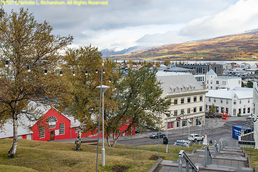 Akureyri, in North Iceland, is Iceland's fourth-largest city, with a population of around eighteen thousand. It lies at the head of Eyjarfjorthur, Iceland's longest fjord (60 km). It was settled in the 9th century and is an important port and fishing center due to its ice-free harbor. The entire town is geothermally heated.