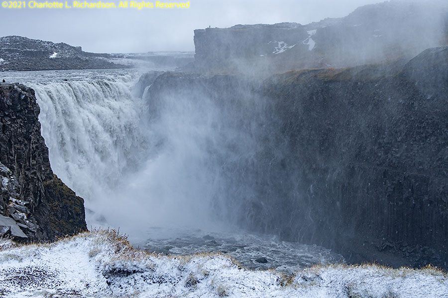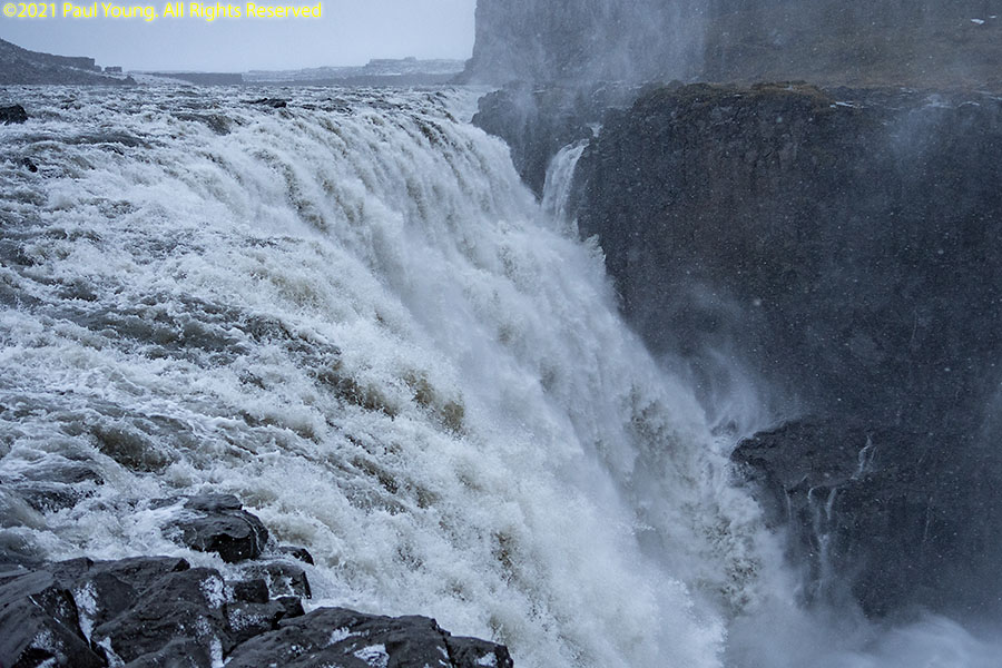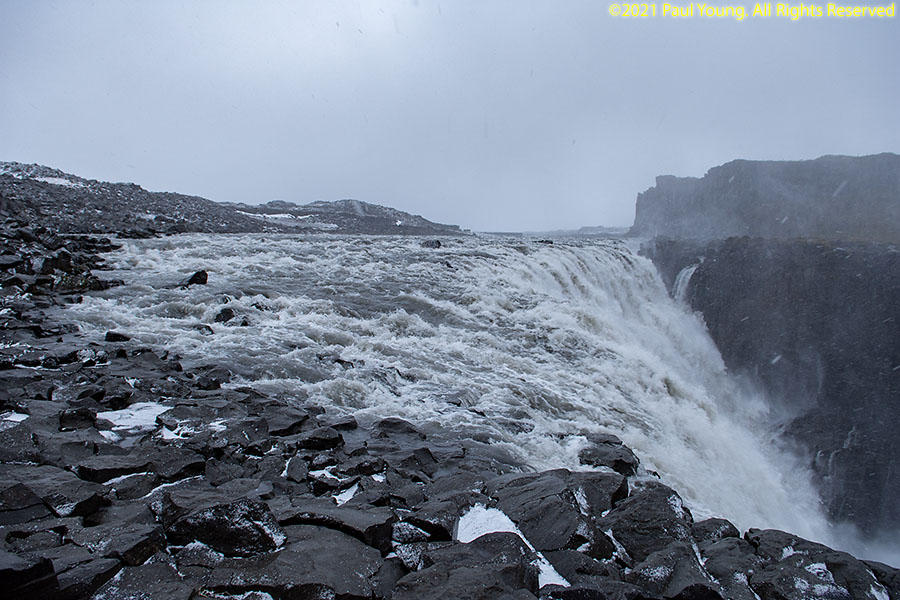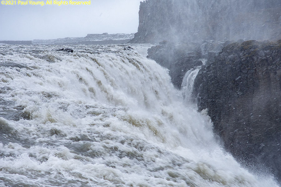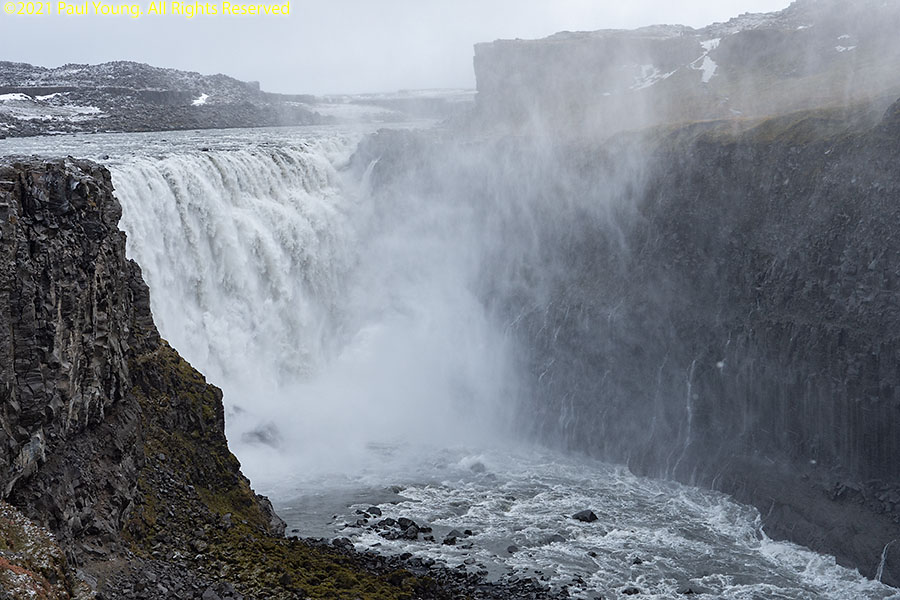 At the southern entrance to Jokulsarglufar (Vatnajokull National Park), Dettifoss is one of Europe's largest waterfalls. The waterfall is 45m high and has the greatest water volume of any waterfall in Europe. The national park protects the Vatnajokull Ice Cap.