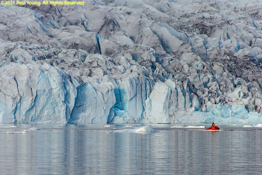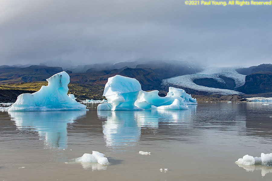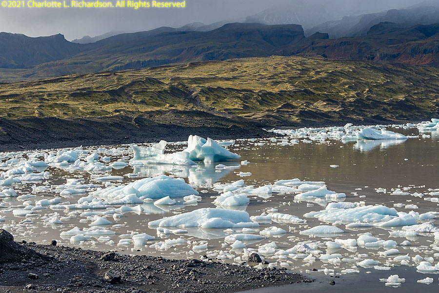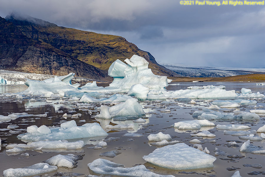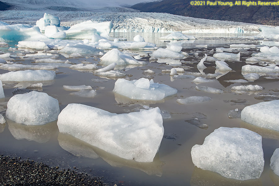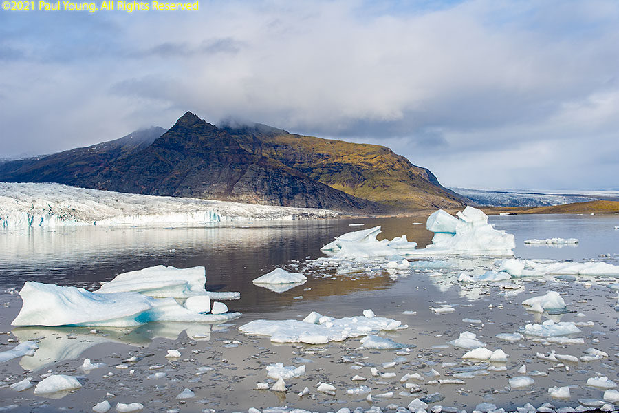 The Fjalljokull Glacier calves into the easily-accessible Fjallsarlon glacier lagoon.