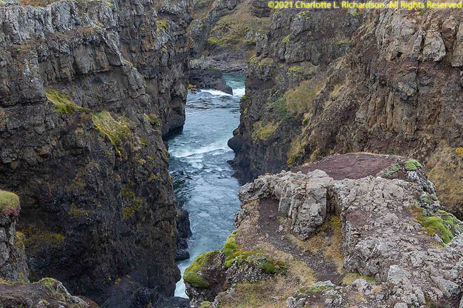 Legend has it that this canyon of the Vithidalsa River in North Iceland was once the home of a beautiful female troll named Kola, givng the name Kolufossar Falls to the waterfalls.