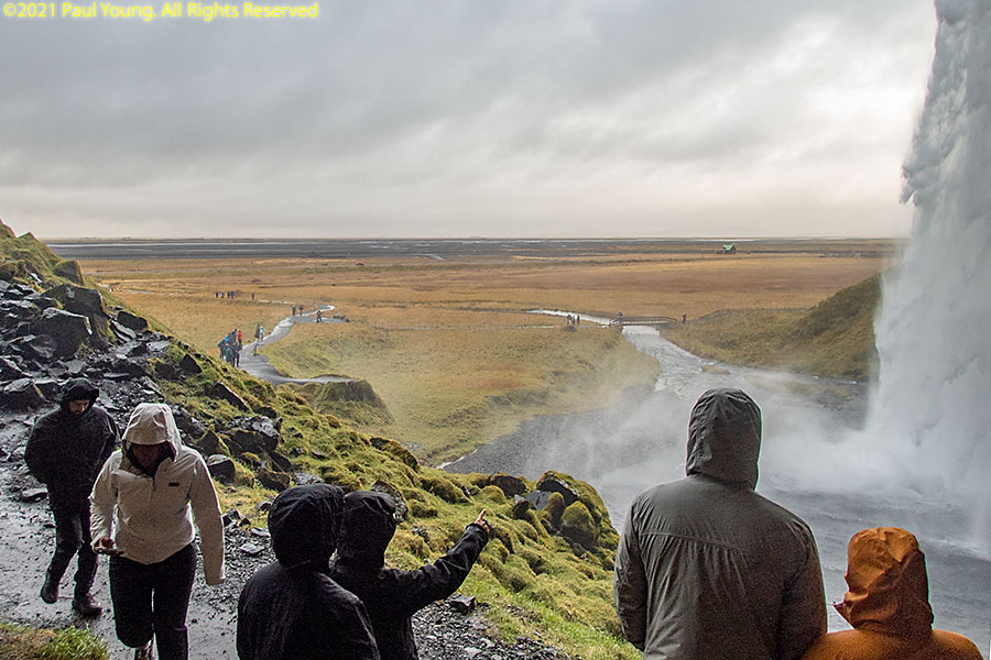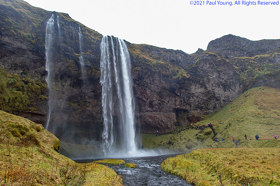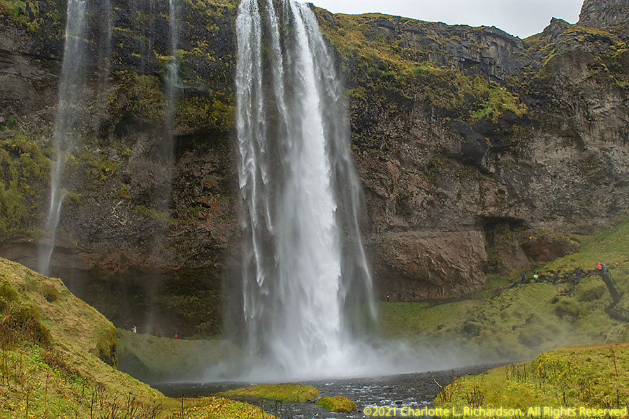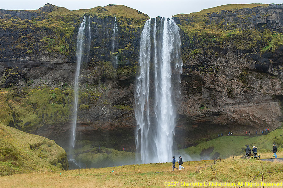 This 60m high waterfall of the Seljalands River originates on the lower escarpments of Eyjafjallajokull Volcano glacier. It is possible to walk behind the waterfall.