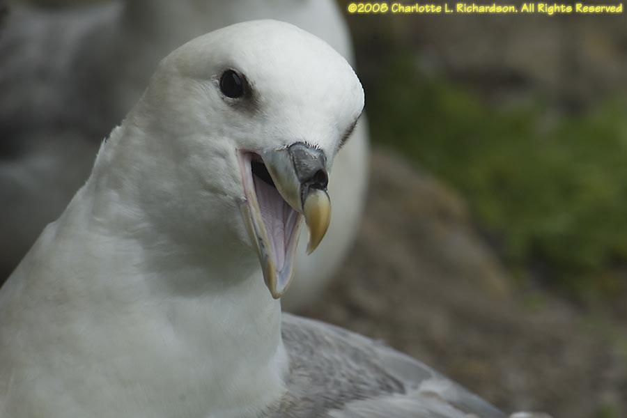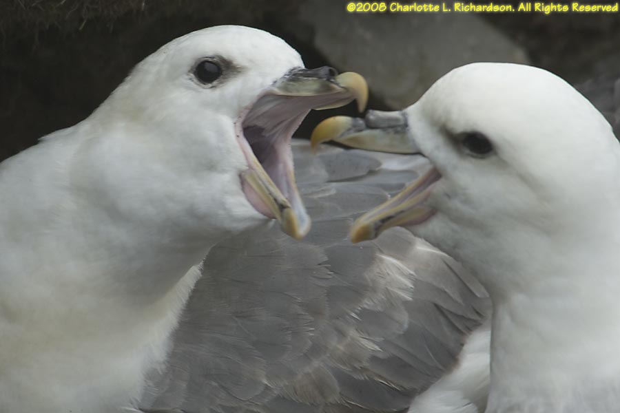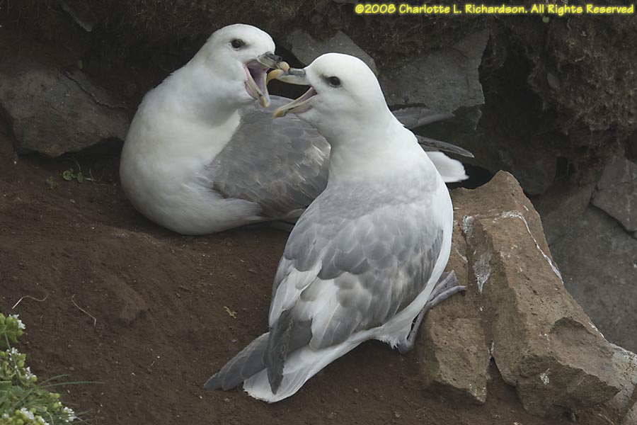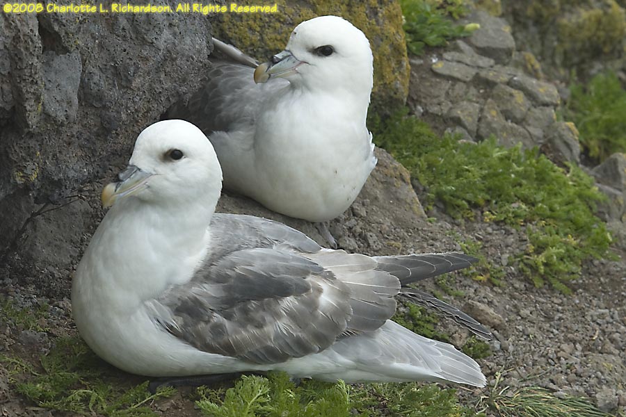 Fulmars (Fulmarus glacialis) are large gull-like tubenose seabirds with thick necks and long narrow wings.