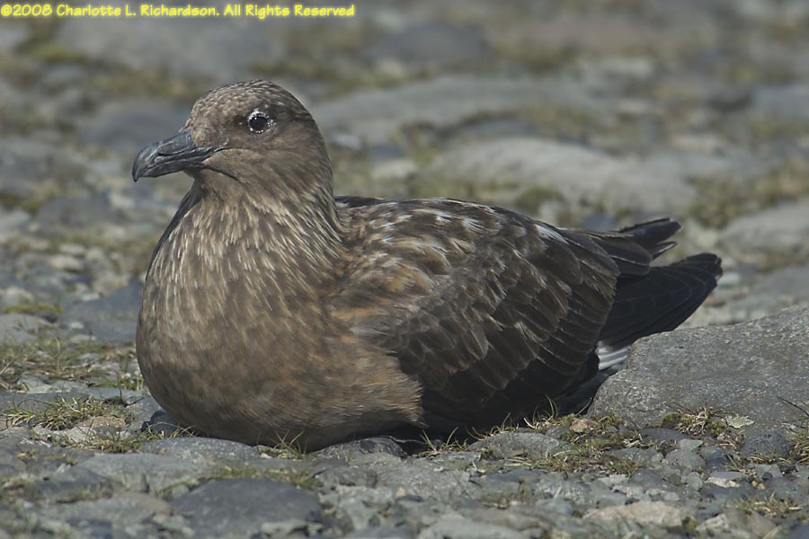 Great Skuas (Catharacta skua) are larger and more heavily built birds. They are agile and powerful fliers.
