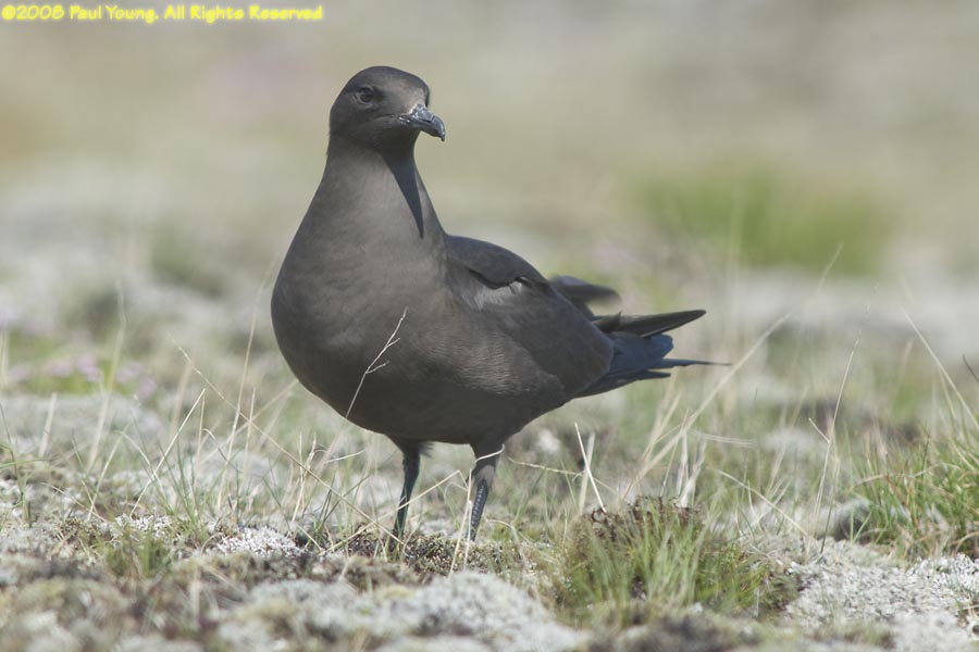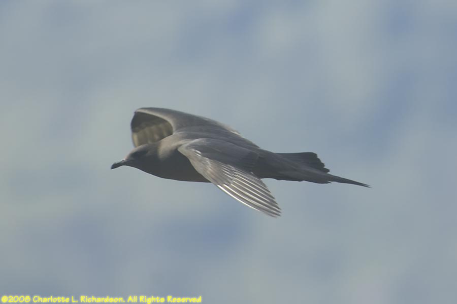 Arctic Skuas (Stercorarius parasiticus) are smaller and more slender with long central tail feathers and long wings. There are light and dark morph arctic skuas.