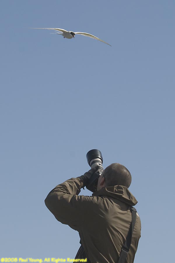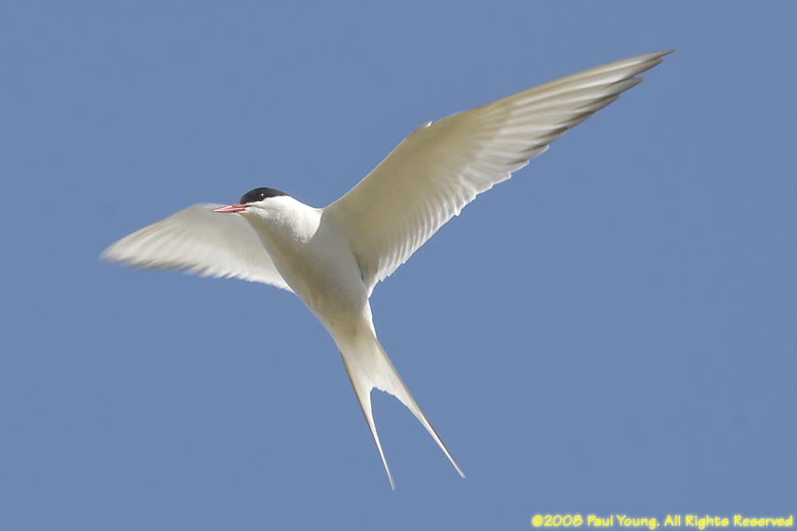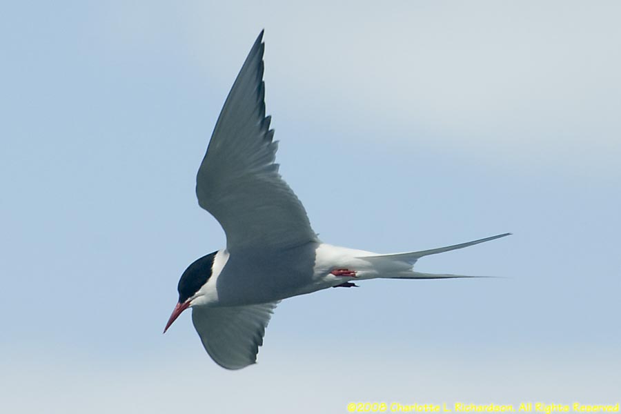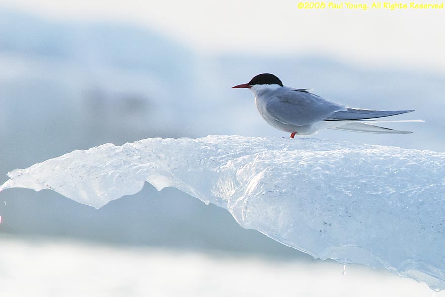 Arctic terns (Sterna paradisaea) are slender, elegant terns. The pesky birds aggressively defend their nesting areas - even if the photographer is a long ways from the nest site. They migrate to the Antarctic for the winter.