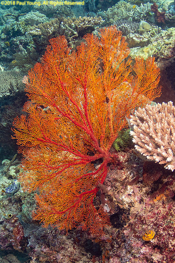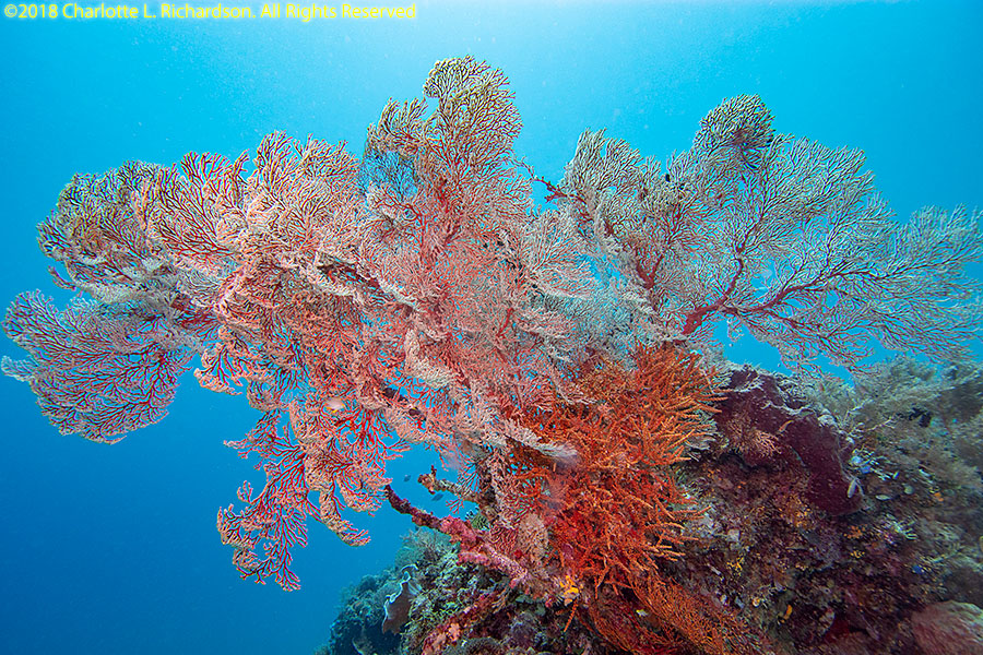 Sea fans are sessile colonial cnidarians. Individual polyps form colonies that are erect, flattened, and branching, resembling a fan.