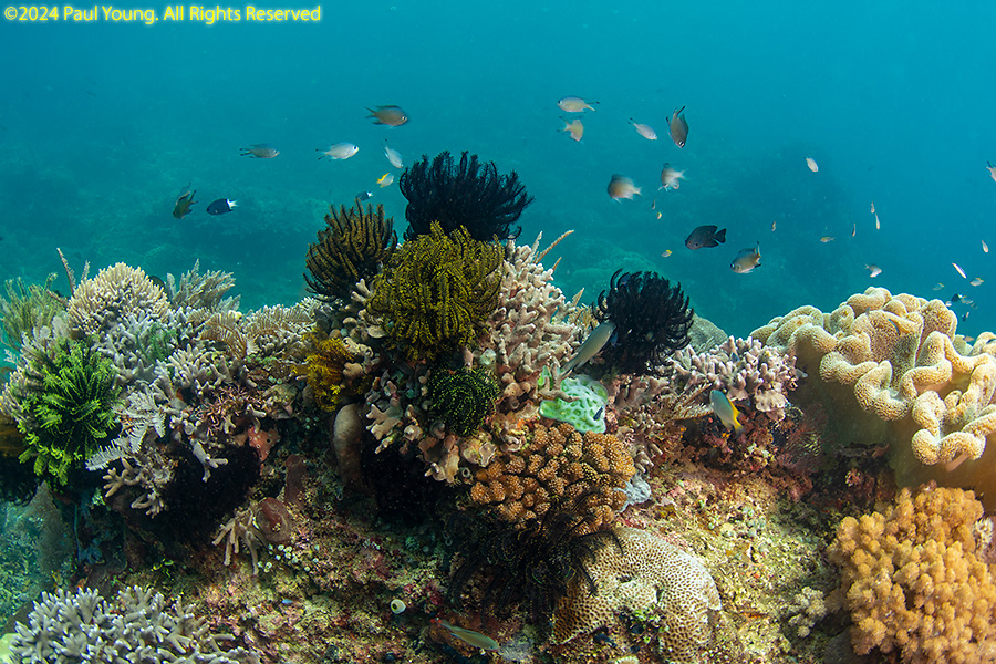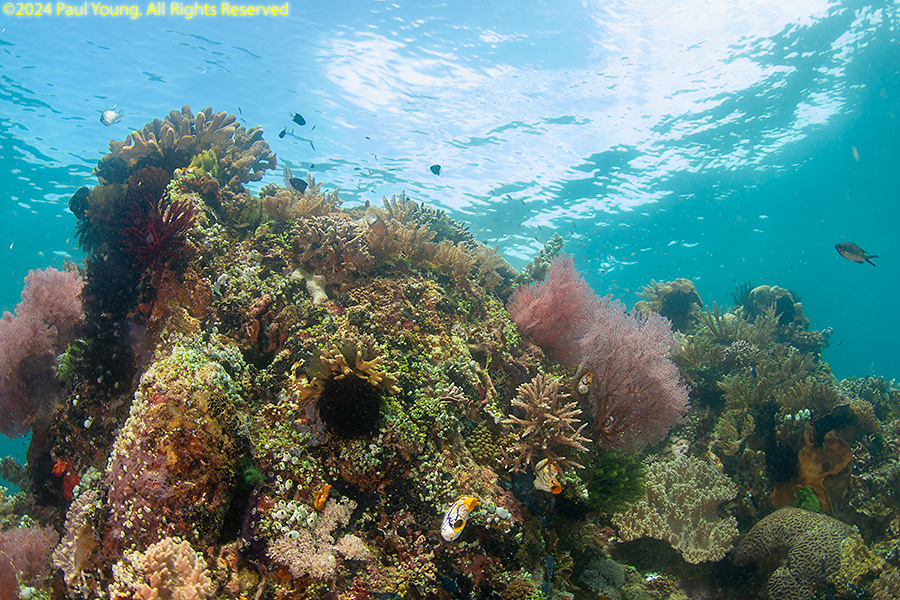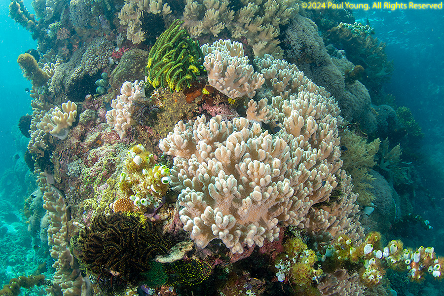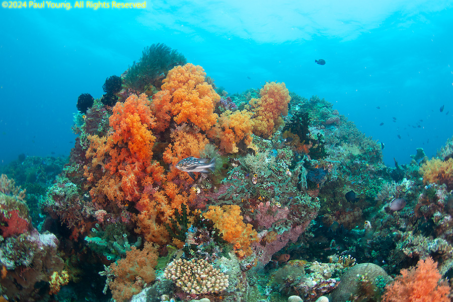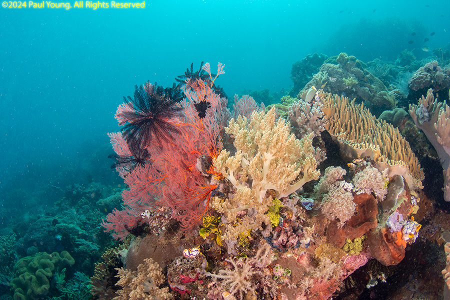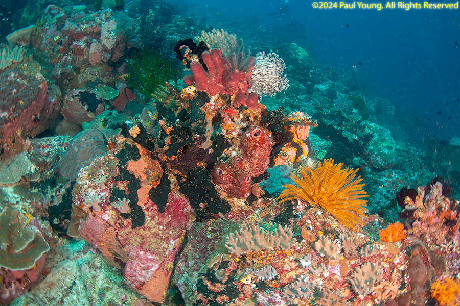 Bangka Island is located off the northeastern tip of Sulawesi near the city of Bitung. Sandy beaches and coral reefs surround the southwestern and southern parts of the island. The northern coastline is rockier and has more seagrass than coral. We stayed at Coral Eye. This area is known for soft corals.