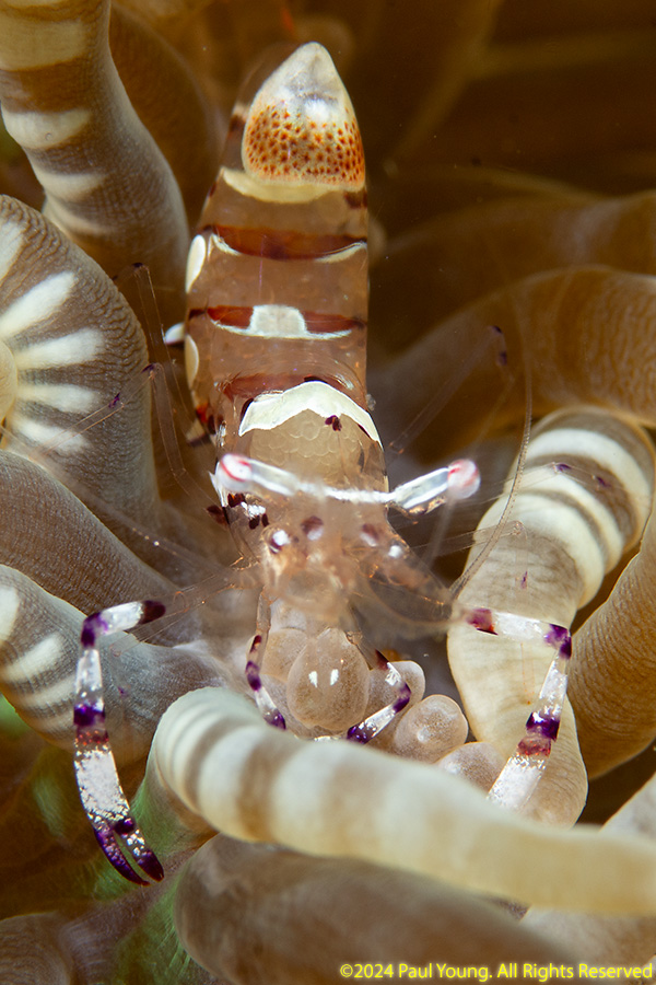 Peacock-tail aneomone shrimp, Periclimenes brevicarpalis