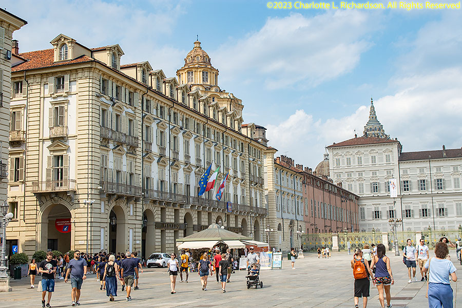 Piazza San Carlo (Piazza Reale) was laid out in the 16th and 17th centuries in the Baroque style. The southern edge of the square has the twin churches of Santa Cristina and San Carlo Borromeo.