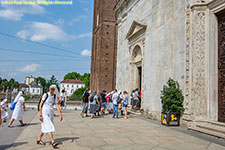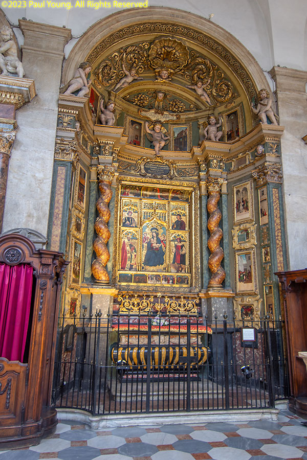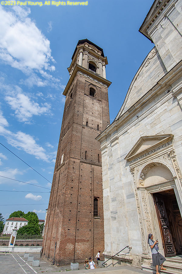 The Turin Cathedral, dedicated to Saint John the Baptist (Cathedrale di San Giovanni Battista), was built in 1491-1498. The adjacent Chapel of the Holy Shroud was added to the structure in 1668-1694. The cathedral adjoins a bell tower built in 1470.