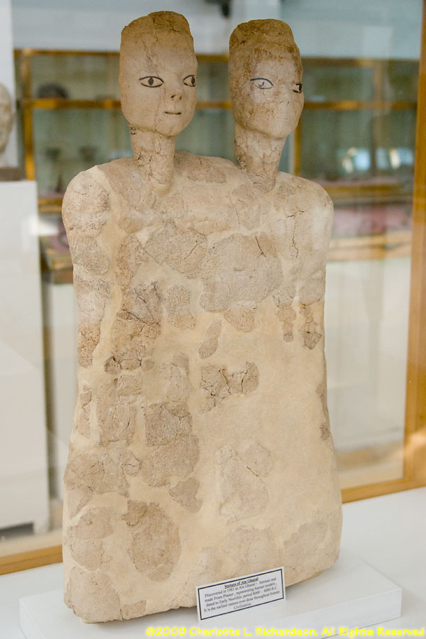 The Amman Citadel on Jebel al Qala'a, the highest hill in Amman, is the site of ancient Rabbath-Amman. Artifacts found here date from the Bronze Age, the Iron Age, and the Roman, Byzantine, and Umayyad periods. The Umayyad Palace, built around 720 C.E., is behind the excellent National Archeological Museum. The museum has three of the Ain Ghazal statues, from 6500 B.C.E., and some of the Dead Sea scrolls.