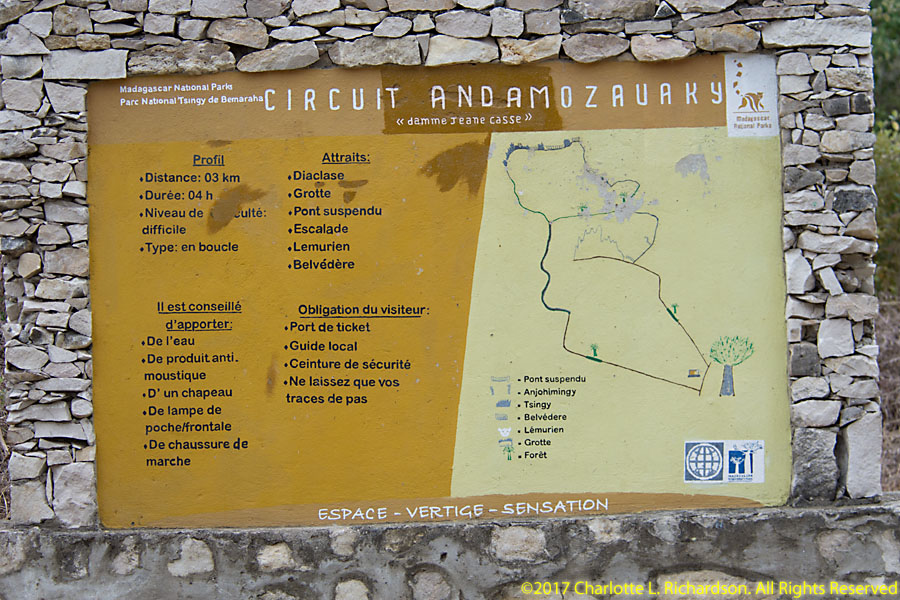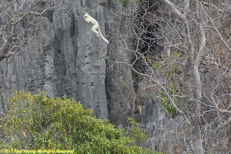 Tsingy de Bemaraha Strict Nature Reserve is in northwest Madagascar's Melaky Region, 150 km north of Morondava. The southern part of the protected area is Tsingy de Bemaraha National Park. The needle-sharp tsingy are on cliffs over the Manambolo River. The park centers on two geological formations, the Great Tsingy and the Little Tsingy. Together with the adjacent nature reserve, the park is a UNESCO World Heritage site. It is the second largest protected area on Madagascar, with the island's largest pinnacle karst. At the southern edge of the park the Manambolo River has cut a spectacular gorge through the limestone. The area is only accessible during the dry (winter) season. Access is via Bekopaka. The park hosts eleven species of lemurs, 90 species of birds, and over 50 reptile species.