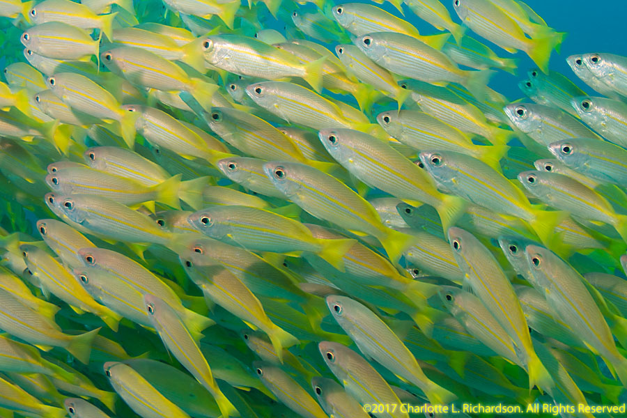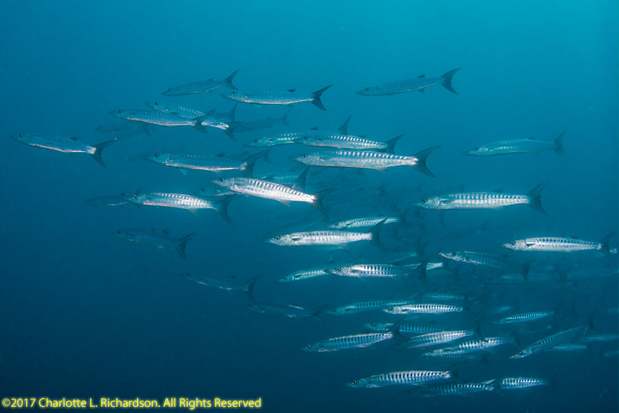 Blackfin barracuda, Sphyraena qenie, are the most common barracuda in the Red Sea and the Indian Ocean, forming large densely-packed schools.