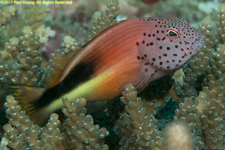 Spotted hawkfish (coral hawkfish), Cirrhitichthys oxycephalus