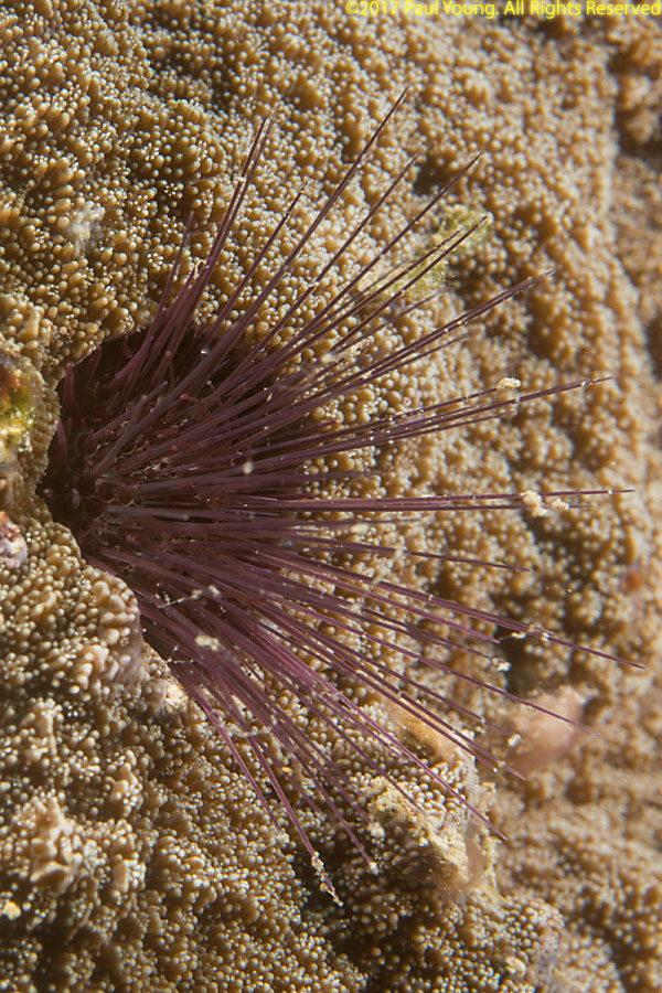 Sea urchins are related to sand dollars. They move slowly, feeding primarily on algae.