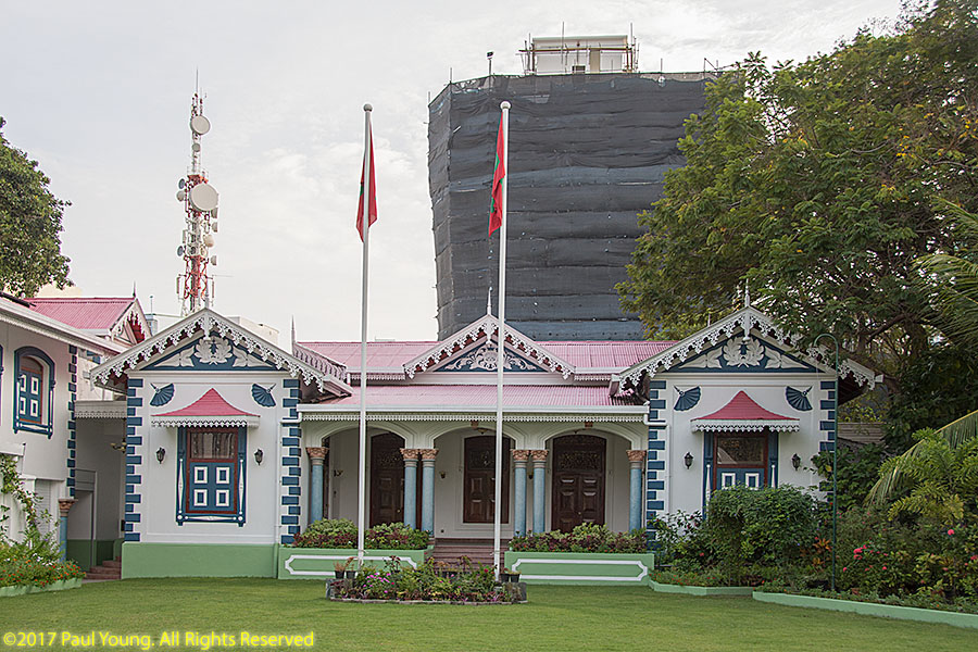 Grand Friday Mosque and Islamic Center, built in 1984 of white marble with the help of the Gulf States, Pakistan, Brunei, and Malaysia, is the largest mosque in the country. Its minaret, or munnaaru, is the tallest structure in Male' other than communications towers.