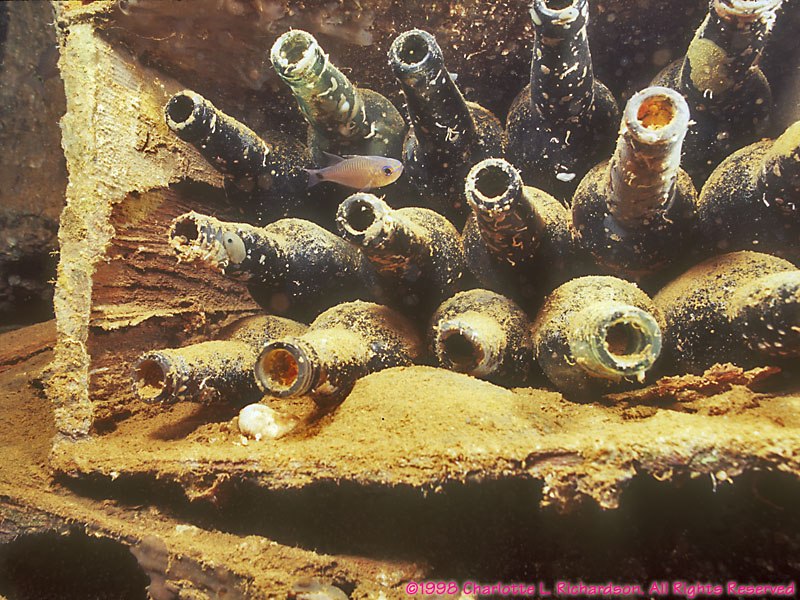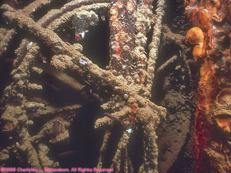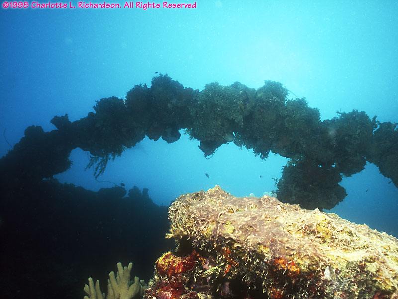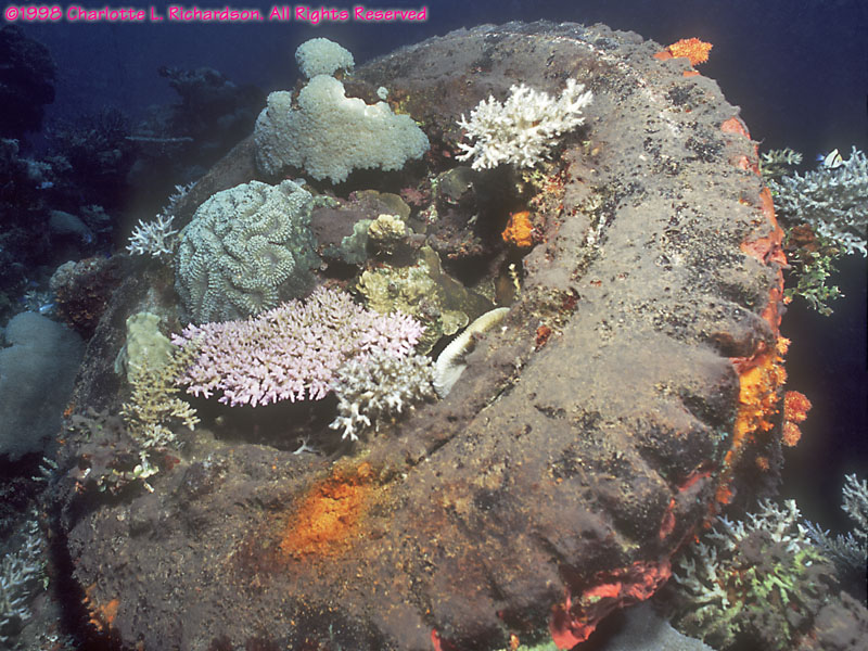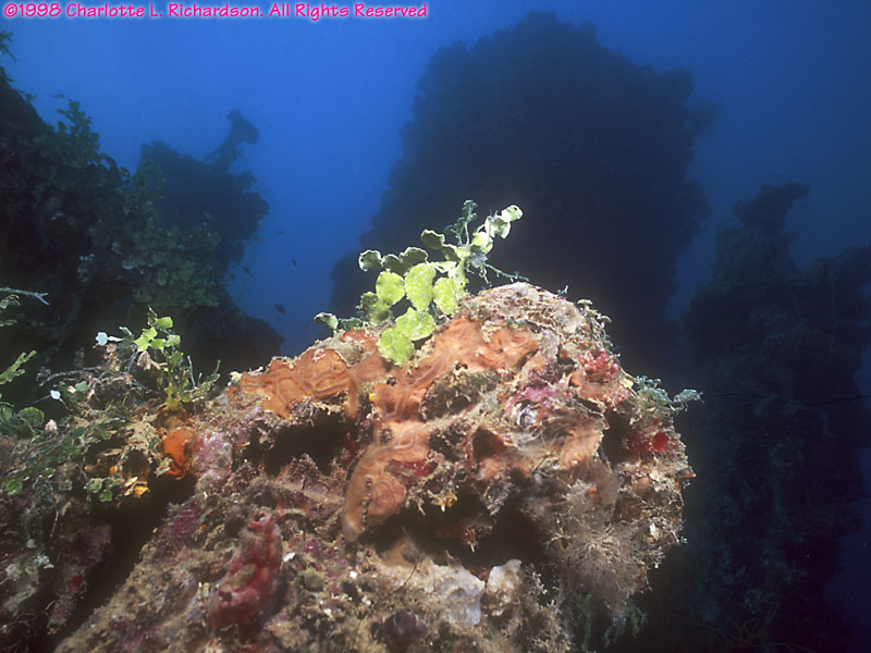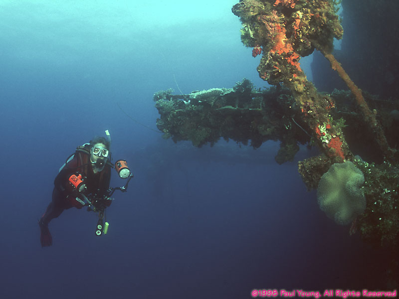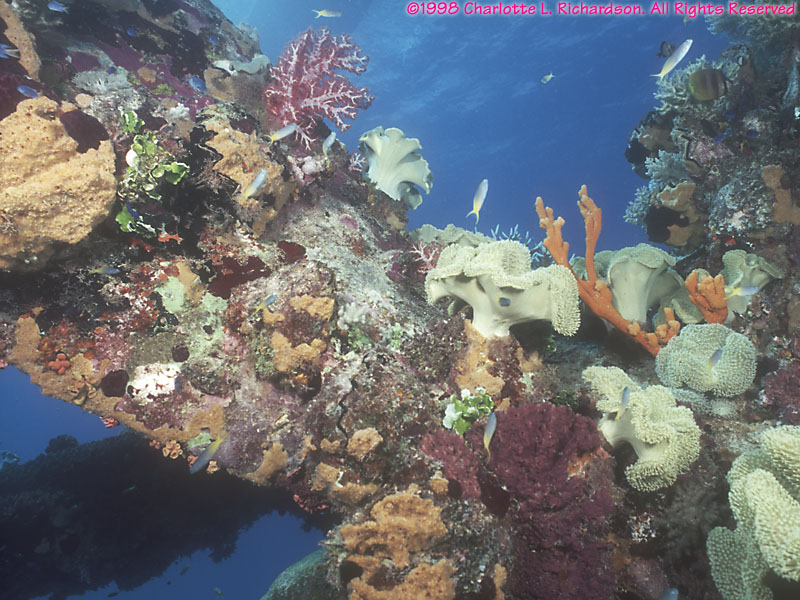 Fujikawa Maru: The most spectacular wreck we dived, the Fujikawa Maru is a 436' armed aircraft ferry with large deck guns and lots of cargo, resting upright with the deck at 50' and the stubs of two masts exposed, near Eten Island.