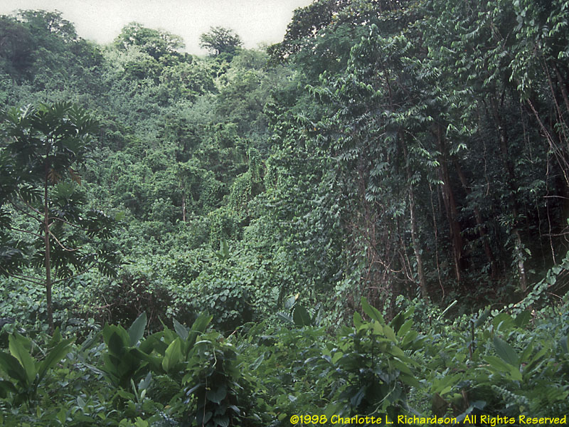 Between World War I and World War II thousands of Japanese came to Kosrae, forcing the population to abandon their villages and move inland. Part way up the slopes of Mount Finkol are the the ruins of Menke, even older than the Lelu ruins. Menke was sacred to the breadfruit goddess Sinlaku.