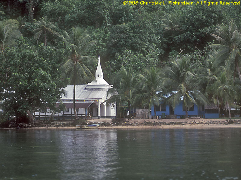 Diseases brought to Kosrae by whaling ships nearly wiped out the population in the 1850's. The whalers were followed by protestant missionaries from Hawaii, who converted the survivors. The people today are very religious. The whole island shuts down completely on Sunday except for church services, sung in beautiful multi-part harmony.