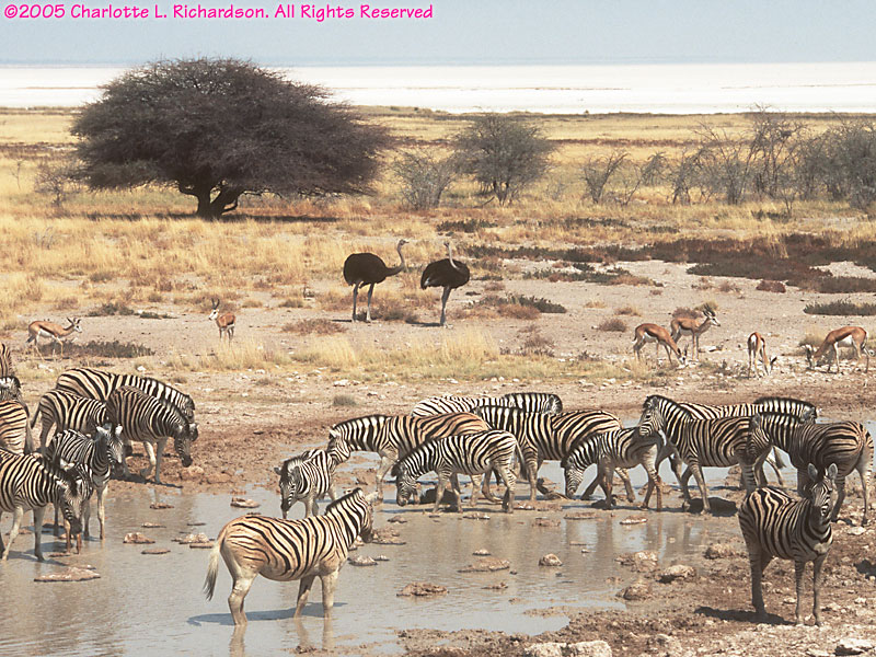 The central part of Etosha has the most beautiful waterholes, with views of the salt pan to the north and lots of animals.