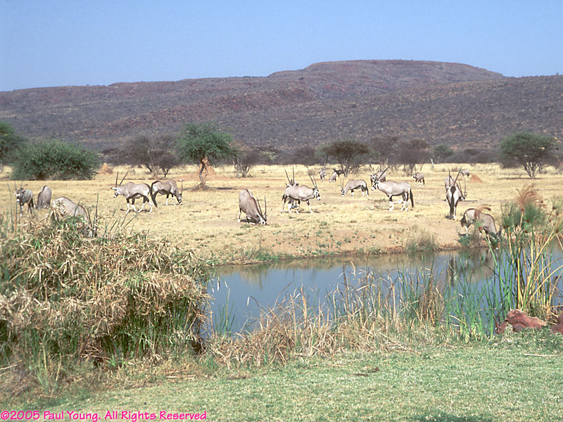 Dry grasslands near the lodge host huge numbers of oryxes. The extensive enclosures where cheetahs and leopards are housed are mostly dry woodlands.
