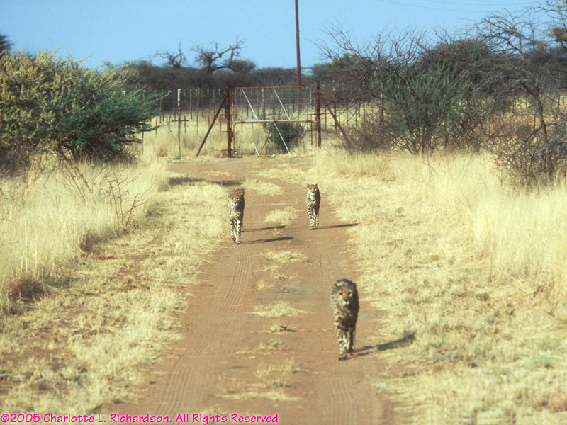 Human-adapted cheetahs cannot be released into the wild, and are housed in large enclosures. This one has five animals.