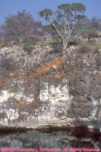 This fresh-water sinkhole is on the way from the east end of Etosha back south to Windhoek. It was formed by the collapse of the ceiling of a large limestone cave.