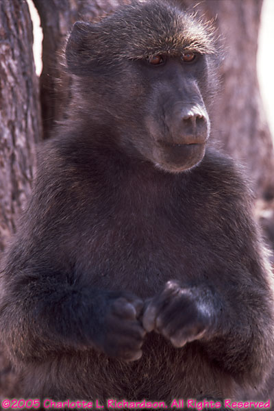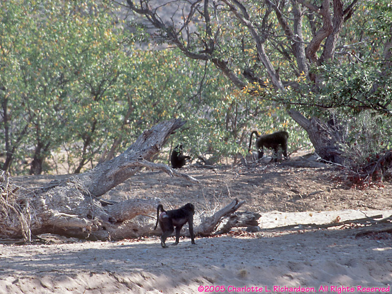 Found near Windhoek, where they are considered a nuisance, and along the seasonal rivers in Damaraland. They are not found in Etosha because there are no trees for them to climb to escape predatory lions.