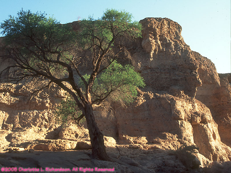 This slot canyon was formed by the Tsauchab River. The walls are loose sand and gravel conglomerate.