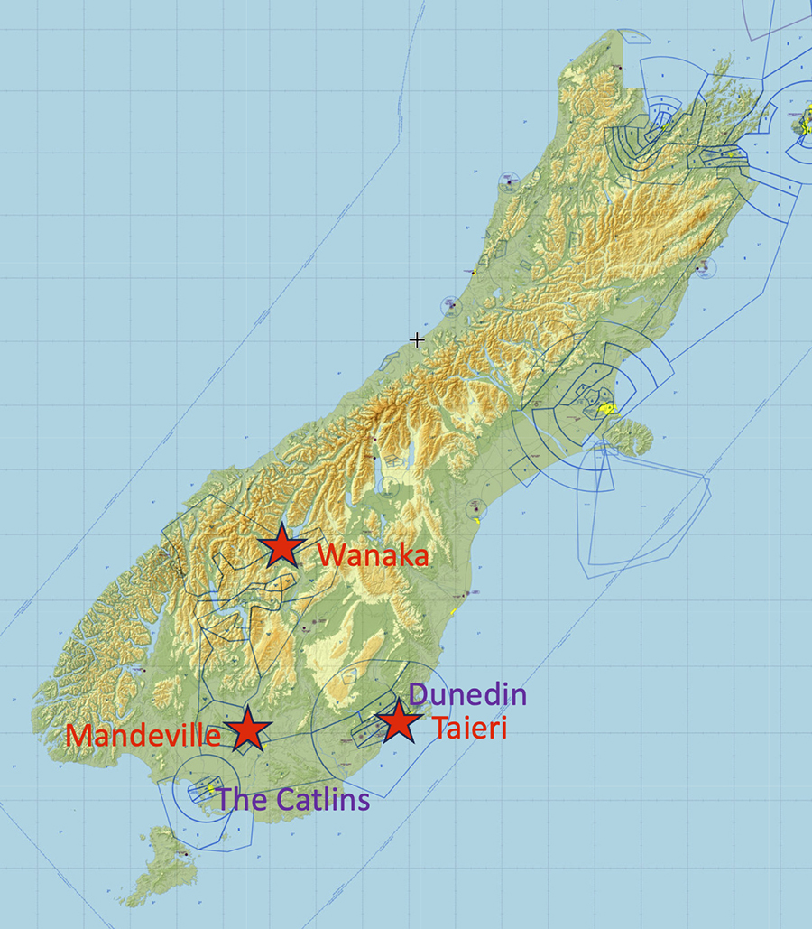 After the Croydon visit, we flew from Mandeville to Taieri/Dunedin (Mosgiel) via the scenic Catlins coastline, along the southeast tip of South Island.