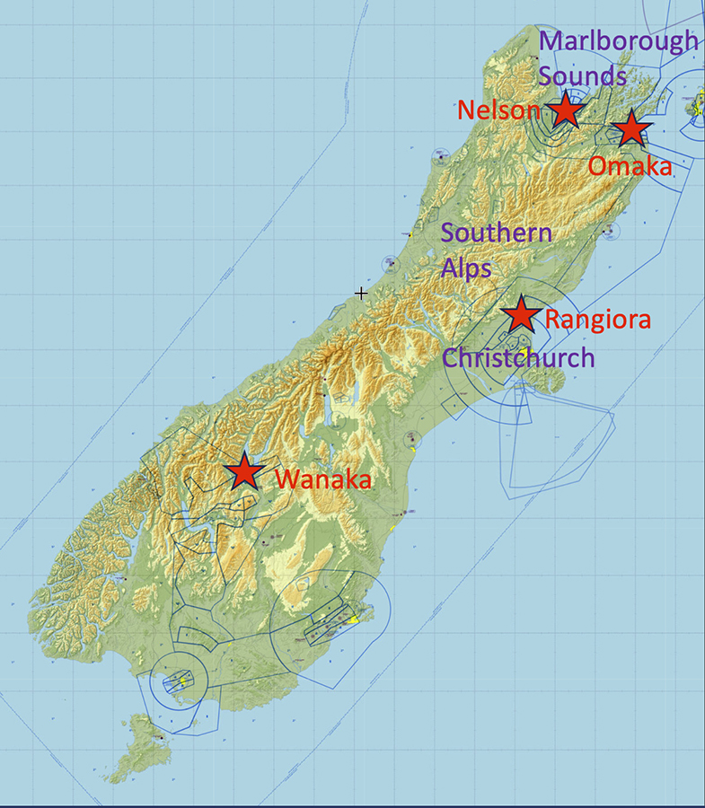 Leaving Rangiora, we flew up the coast to the north, passing Kaikoura Aiport, NZKI, a 700m paved strip 4 NM southwest of Kaikoura at Peketa, 180 km north of Christchurch, but we elected not to land there due to the weather. The Kaikoura area was heavily damaged by the 2016 earthquake, which uplifted the bay and surrounding region by as much as 2m. There are often sperm whales and pods of dolphins in this area but we did not see any.