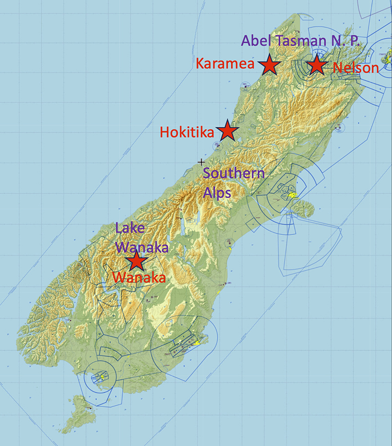 From Hokitika we flew south through the Southern Alps, mostly VFR-on-top, back to home base at Wanaka.