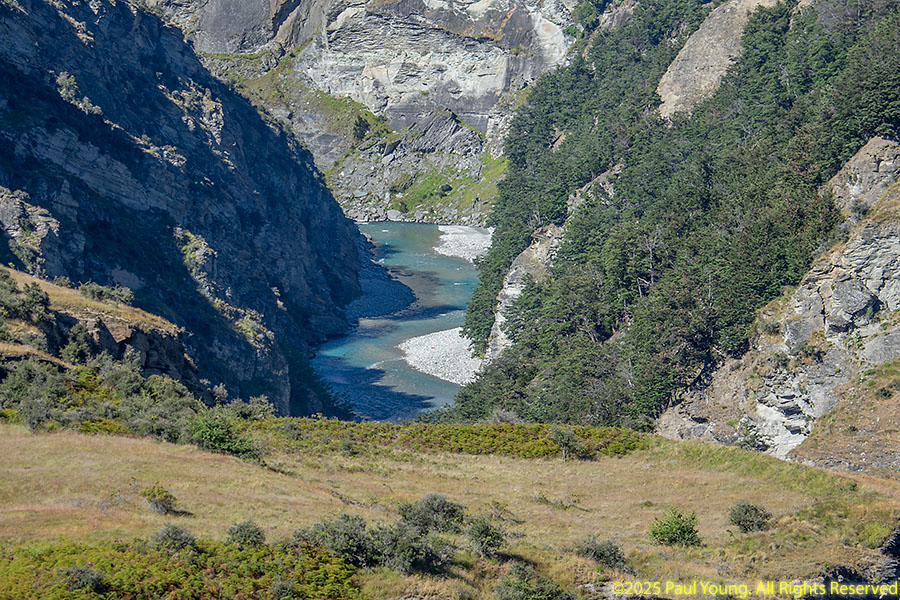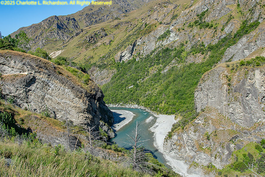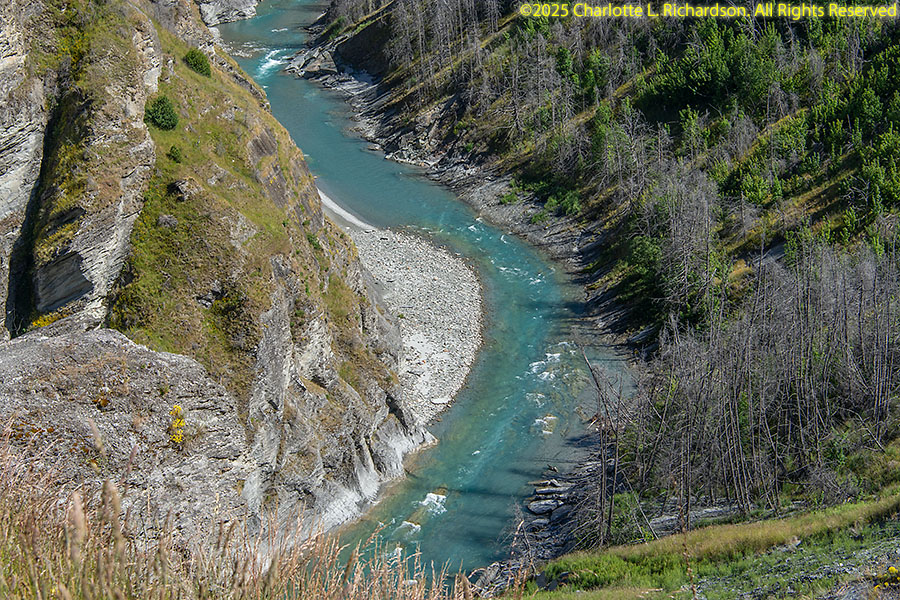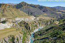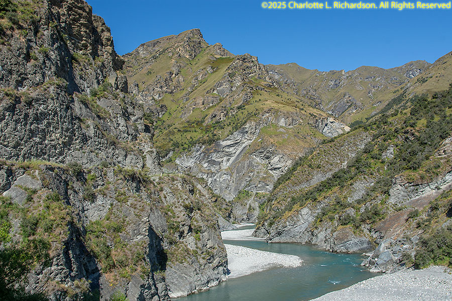 The gorge was carved by the Shotover River, one of New Zealand's richest gold-bearing rivers. Remnants of the mining operations are all around.