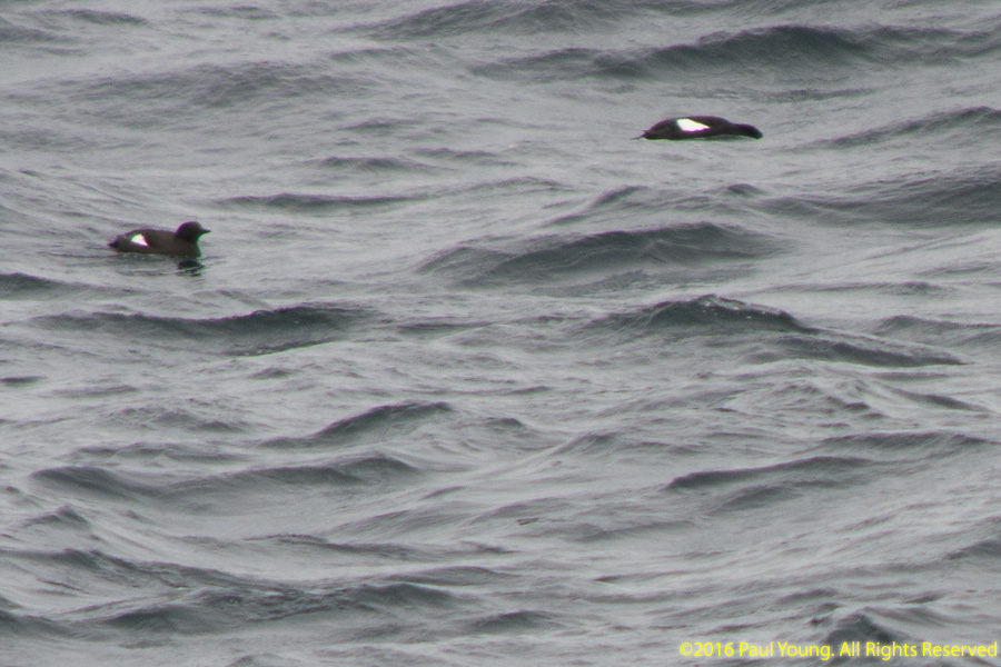 The black guillemot or tystie, Cepphus grylle, is a medium-sized alcid. Adults are black with a white wing patch. They breed on rocky shores, cliffs, and islands in the North Atlantic, laying their eggs in rocky sites near the water. There are five subspecies.