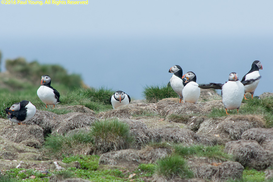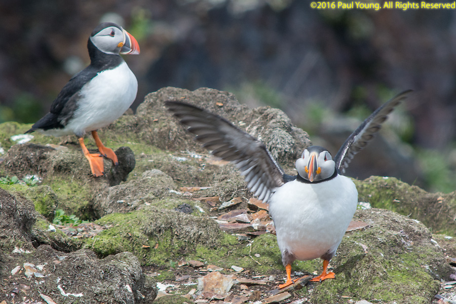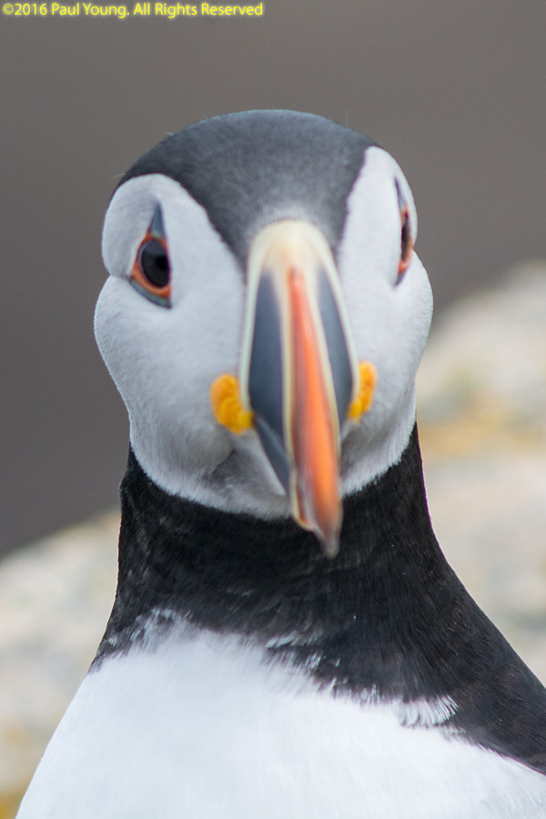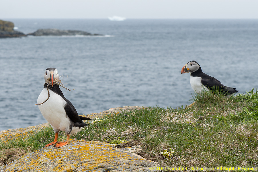 The Atlantic puffin or common puffin, Fratercula arctica, is the official bird of Newfoundland and Labrador. This small auk is the only puffin native to the Atlantic Ocean. Two related species are found in the northeastern Pacific Ocean. Puffins spend the autumn and winter on the open arctic ocean and return to coastal areas to breed in late spring. They nest in clifftop colonies, digging burrows where they lay their single eggs. Most colonies are on islands where there are no terrestrial predators. There are three subspecies. Billing is a puffin courtship and bonding behavior and continues throughout the breeding season (see video clip, below).