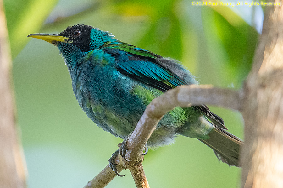 Green honecreeper (males left, female right), Chlorophanes spiza argutus