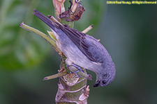 Tanagers and dacnis are a large family unique to the New World. Typical tanagers are 5-6" long, have stout bills, and most eat fruit.