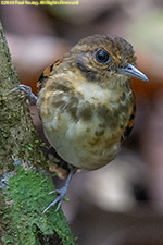 Spotted antbird (males left, female right) Hylophylax naevioides