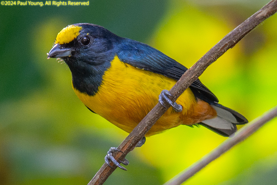 Fulvous-vented euphonia (female left, male right), Euphonia fulvicrissa