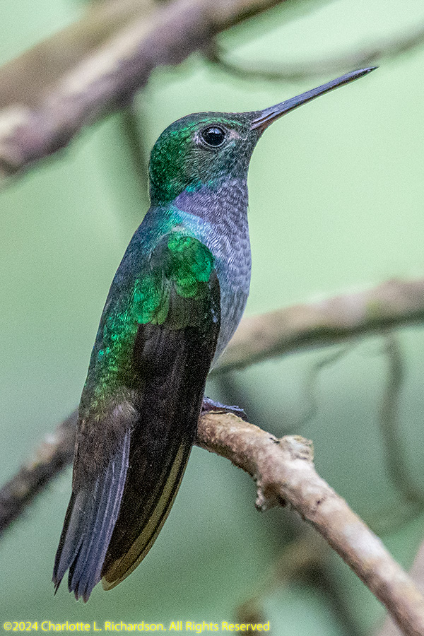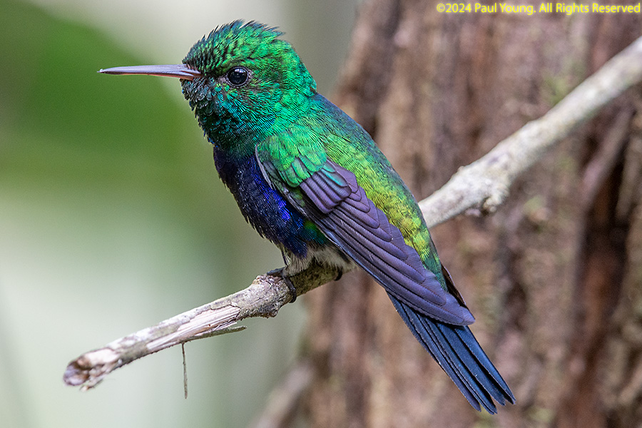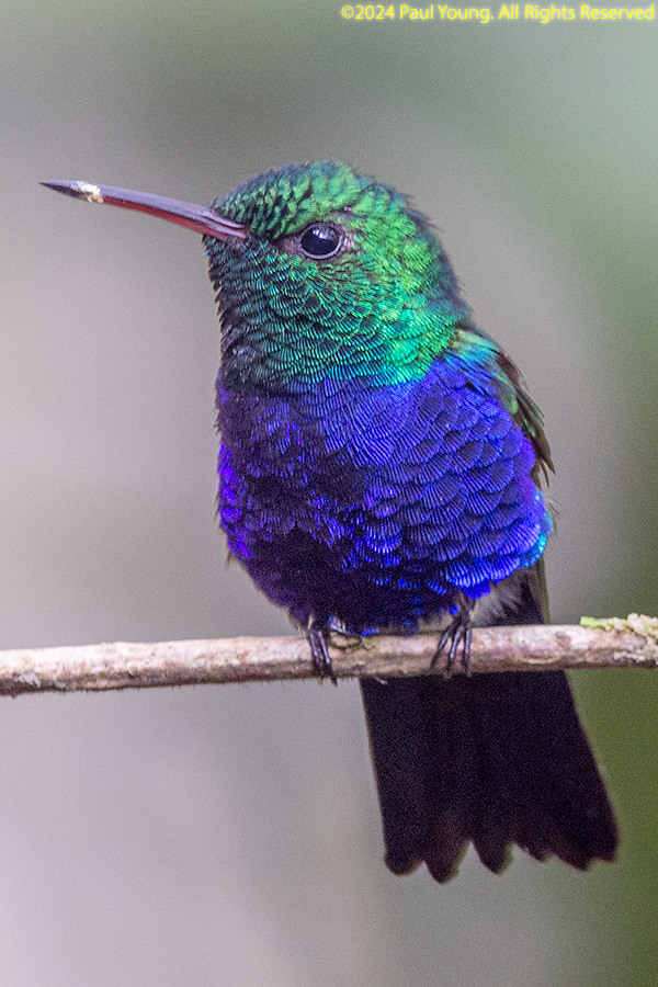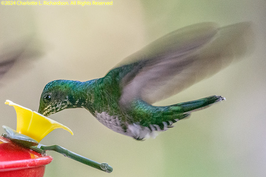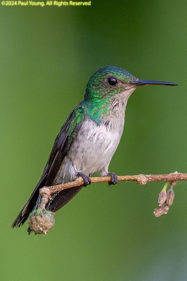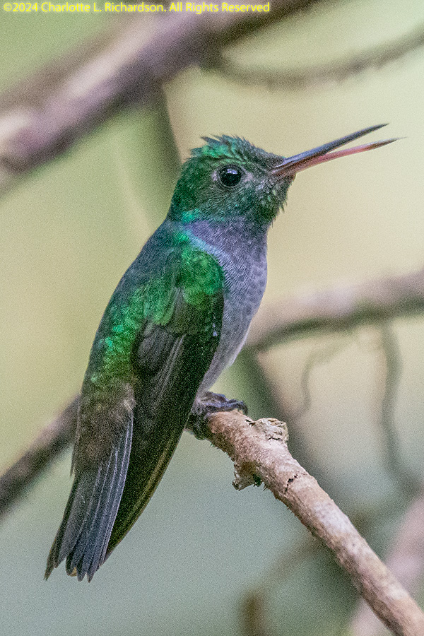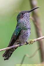 Blue-chested hummingbird (female left, males right), Polyerata amabilis