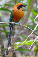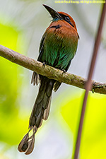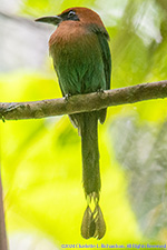 Motmots are a family of birds related to kingfishers, bee-eaters, and rollers. The 10 species are endemic to Neotropical woodlands and forests, and six are found in Central America. Many have long tails with a distinctive racket-like tip.