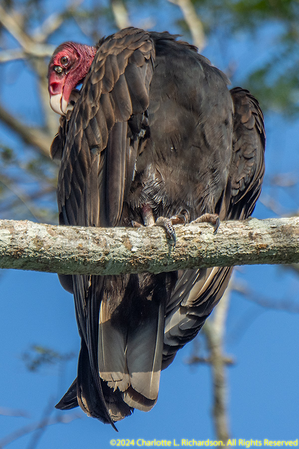 Vultures are birds of prey with bald, unfeathered heads that scavange on carrion. There are seven New World species.
